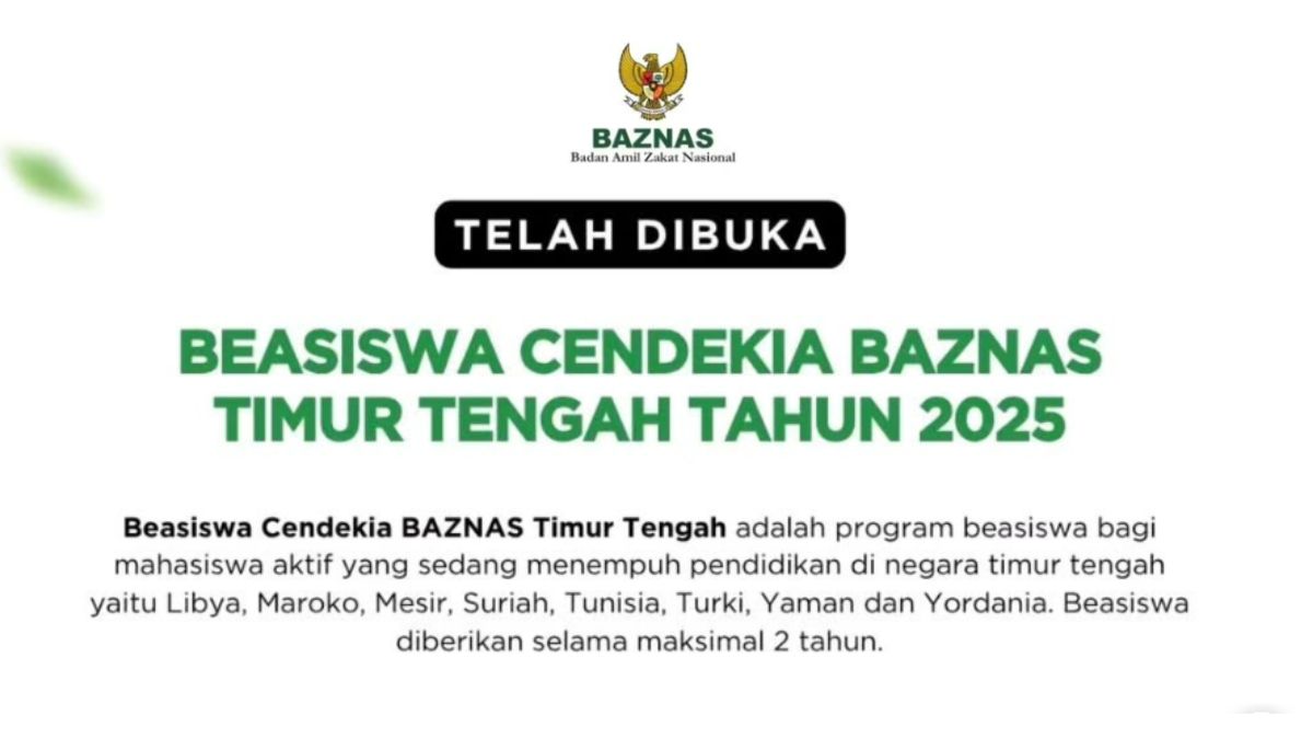 Telah Dibuka: Beasiswa Cendekia BAZNAS Timur Tengah Tahun 2025